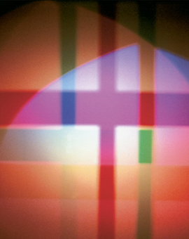 Przewidywana jest i eksperymentowana projekcja świetlna wariacji barw w perspektywie nawy głównej. Odbywa się ona na dwu ekranach zawieszonych między wielkimi kolumnami absydy z dwu stron starodawnego ołtarza. Na ekranach tych grano kolorowe cienie krzyża. Całość projektu uzupełnia oświetlony obraz tęczy umieszczony ponad ołtarzem za trzema arkadami centralnymi triforium. Muzyka barw może być grana wraz z muzyką katedralnych organów lub też w ciszy. Może wejść ona w interakcje barwną z witrażami, tworząc kolorową symfonię. Po zapadnięciu zmroku, kiedy witraże gasną, może zagrać z wzmożoną intensywnością i żywotnością kolorów, niczym zwielokrotnione echo dnia. Projekt artystyczny dla katedry w Bourges bierze pod uwagę ducha tego sakralnego miejsca. Podobnie jak średniowieczne witraże katedry, kompozycja ta oparta jest na symbolice Starego i Nowego Testamentu.