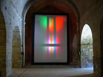 Koncert kolorów we wnętrzu romańskiego kościoła tworzy przestrzeń wibrującą światłem i dźwiękiem – interakcja koloru i dźwięku w kontrapunkcie. Na ekranie Organów Barw sekwencje świateł i cieni kolorowych ujawniają melodię wizualną.
