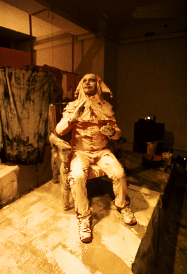 Drugi diapozytyw dokumentuje początek II Aktu perforłansu w którym Elżbieta pokrywała Emila białą farbą.