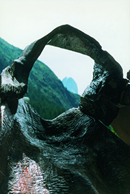 Obserwatorium – leżąca 1995 Rzeźba interaktywna przed naszym domem w Vallorcine z widokiem na słynny szczyt w masywu Mont Blanc «Dru» - marzenie wszystkich wspinaczy skał. Instalacja którą można dostosowywać do przestrzeni ekspozycyjnej - n.p. wieszając. © Elżbieta Dembińska-Cieślar NA TEN SAM TEMAT SUR LE MÊME THÈME